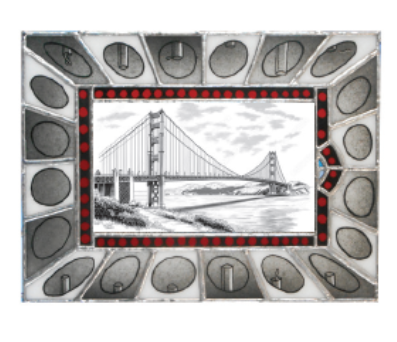Visiting artist Joseph Cavalieri returns sharing his signature imagery on stained glass techniques, this time with the focus of San Francisco icons. You will explore Joseph’s printmaking tactics applied to glass art, while personalizing and manipulating them. You’ll start by choosing an image or two from the choices of custom screens Joseph will bring, print onto your glass, then create an environment and border surrounding the image. Enamels are painted then kiln-polish-fired onto the surface of the glass, then the glass is soldered together. Techniques learned and practiced include airbrushing, pen-and-ink drawing, painting, and of course silk screening. A lecture on designing around the imagery will be covered. Let your imagination soar! Expect to make a 12-by-12 inch finished stained glass panel plus samples. Joseph will also demonstrate in class a quick and inexpensive way to frame and light stained glass panels. If you’ve taken Joseph’s class before, there is still more to learn from this innovative artist. His expertise with design, who is a wealth of information with showcasing and marketing his work. Expand your practice and build your skills!